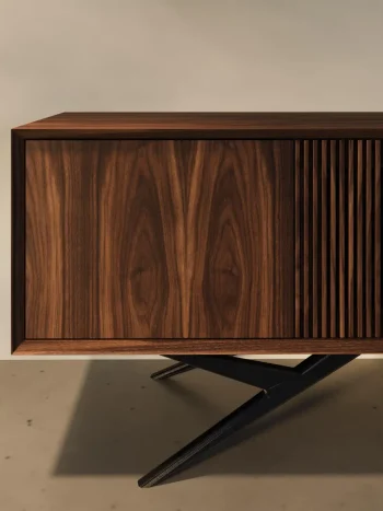 Mid-Century Modern Konsol & TV Ünitesi – Çıtalı Kapaklı Medya Ünitesi
