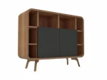 Ön yüzünde yer alan 3 kapak, “push to open” mekanizması sayesinde kulpsuz temiz bir görünüm oluştururken kolay açılıp kapanır. İç yapısında toplam 9 raflı bölme bulunur. Bu geniş alan; kitap, dosya, servis takımı veya dekoratif objeleri düzenli bir şekilde yerleştirmenize imkân tanır. Böylece ahşap konsol, hem depolama hem de sergileme işlevini tek bir üründe birleştirir.