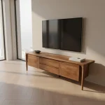 Ahşap TV Ünitesi – Rustik Dokulu Modern Medya Konsolu
