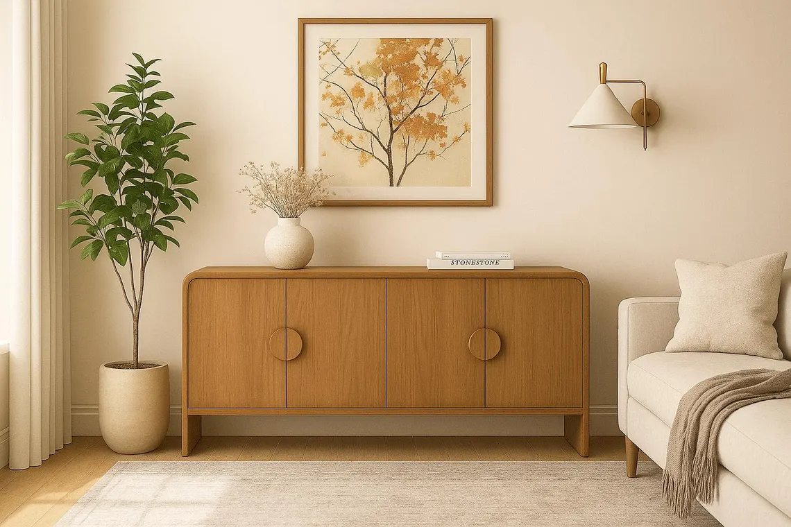 ARCUS Masif Ahşap Media Konsol – Push to Open Kapaklı