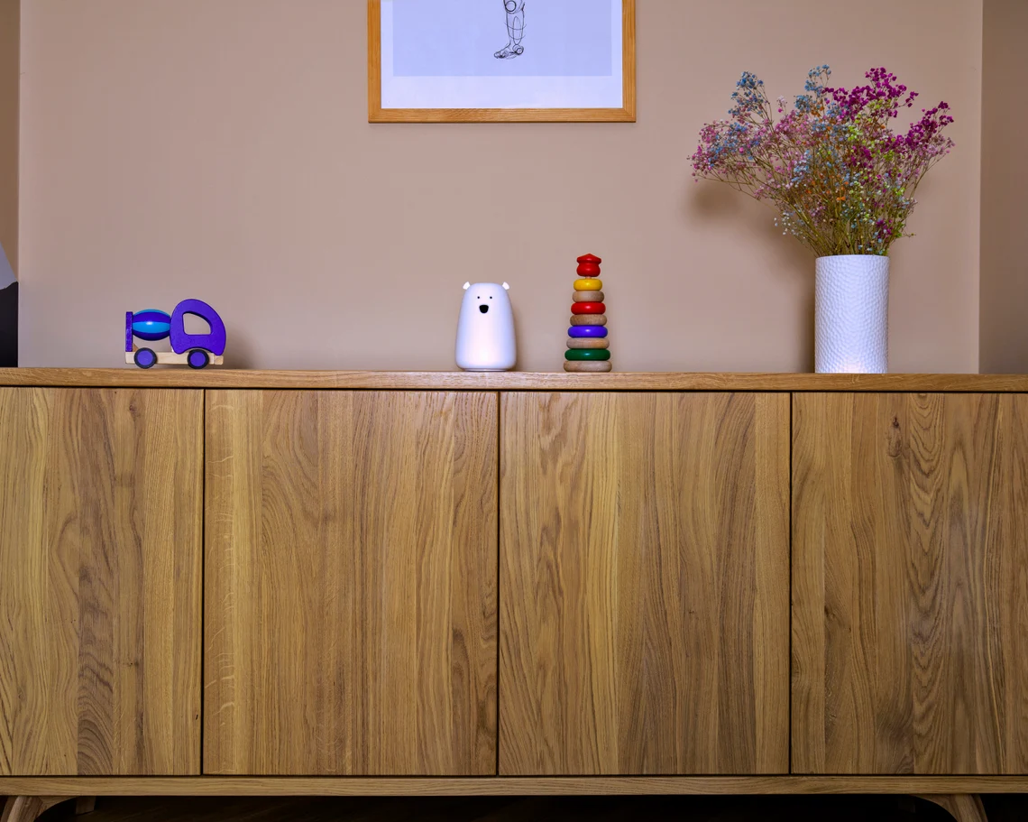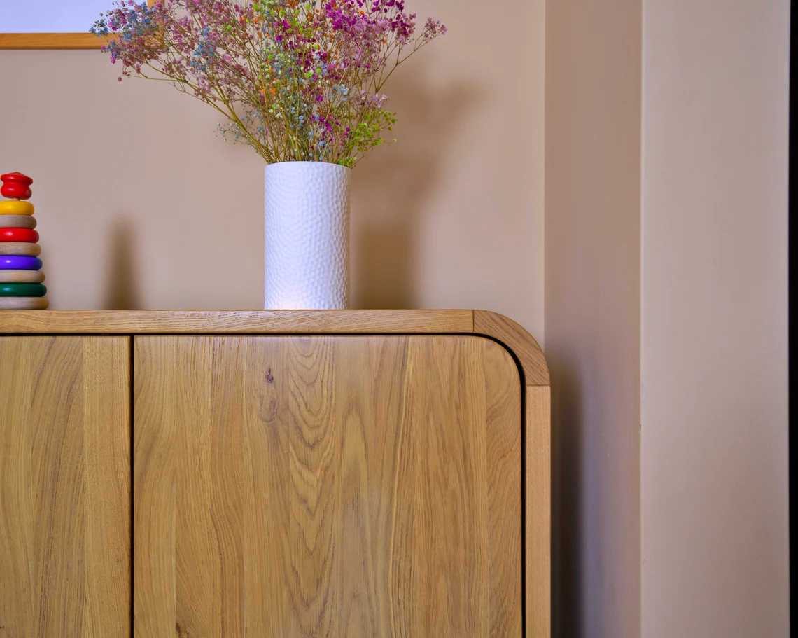 Masif ahşap gövdesi ve doğal damar dokusuyla öne çıkan ARCUS 180 media konsol, geniş üst tablası ve kulpsuz push-to-open kapaklarıyla modern ve sade bir TV ünitesi sunar. Ayarlanabilir raflı iç hacmi sayesinde medya ekipmanları ve aksesuarlar için düzenli bir depolama alanı oluşturur. Ceviz, meşe ve gürgen renk seçenekleriyle salon, yatak odası ve ofis kullanımına uyum sağlar.