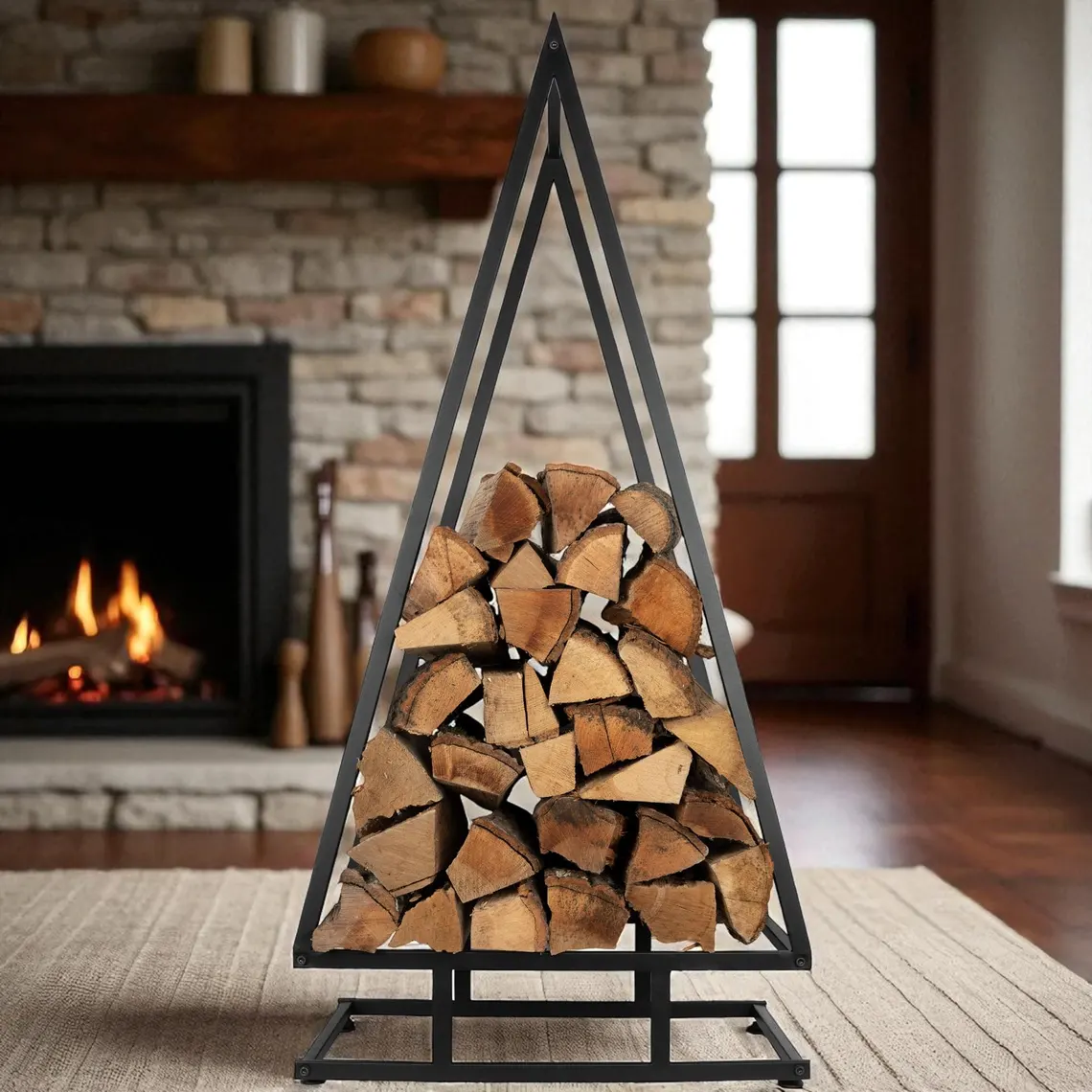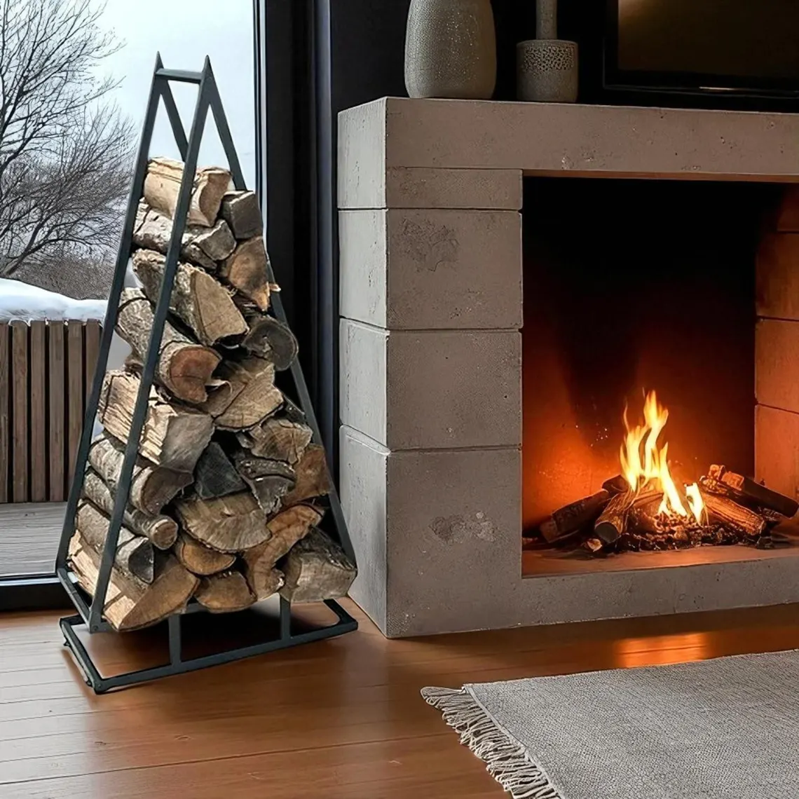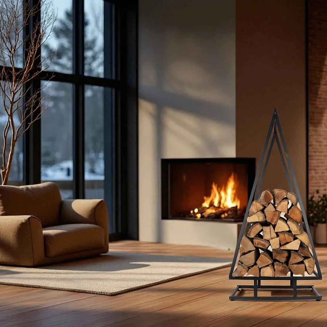 Çam ağacı formundaki tasarımıyla öne çıkan bu dekoratif metal odunluk, kış akşamlarında şömine ya da ateş çukuru etrafında geçirdiğiniz anlara hem düzen hem de estetik katar. Üçgen ağaç siluetine sahip modern çizgileri, ürünü yalnızca bir odun taşıyıcı olmaktan çıkarıp, salonunuzda ya da terasınızda dikkat çeken bir dekorasyon parçasına dönüştürür.