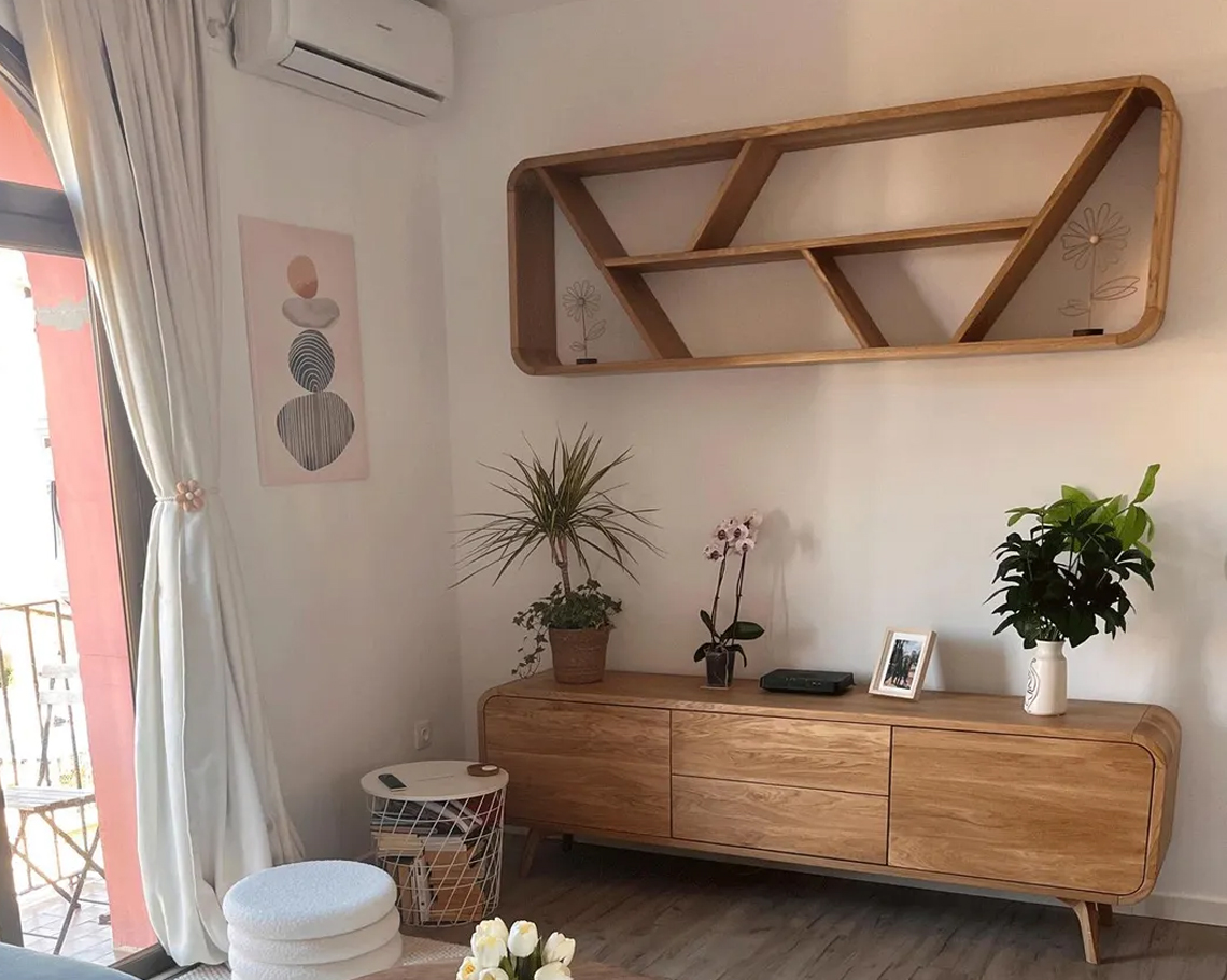 Tamamı ahşaptan üretilen gövde, zengin damar yapısıyla her ürünü birbirinden farklı ve özel kılar. Geniş üst tabla ve geometrik bölmeler, büyük-küçük pek çok eşyayı rahatça yerleştirmenize imkân tanır. Ahşabın doğal tonu; modern, eklektik ve klasik dekorasyon stilleriyle kolayca uyum sağlar, ortama sıcak ve davetkâr bir atmosfer kazandırır.