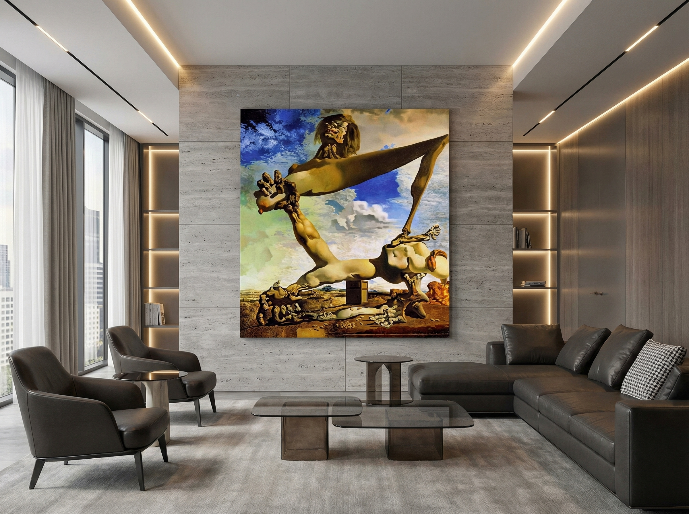 Bu başyapıt, sürrealizmin aykırı dehası Salvador Dalí’nin bilinçaltı imgelerini tarihsel bir travmayla birleştirdiği en cesur yorumlardan biri olarak kabul edilir. Kanvas baskı, eserin sert dokusunu, dramatik gölgelerini ve figürün heykelsi yapısını yüksek çözünürlüklü üretimle net biçimde yansıtır.