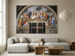 Hezekiel’in Vizyonu, ilahi kudretin ve kozmik düzenin görsel bir patlama hâlinde sunulduğu, Rönesans sanatının en güçlü dini kompozisyonlarından biridir. Merkezde Tanrısal figür, çevresinde dönen sembolik yaratıklar ve yoğun hareket; sahneyi durağan bir anlatıdan çıkararak ilahi güç, vahiy ve insanın küçüklüğü temasına dönüştürür. Bu eser, mekâna hem spiritüel bir derinlik hem de yüksek bir sanatsal enerji katar.