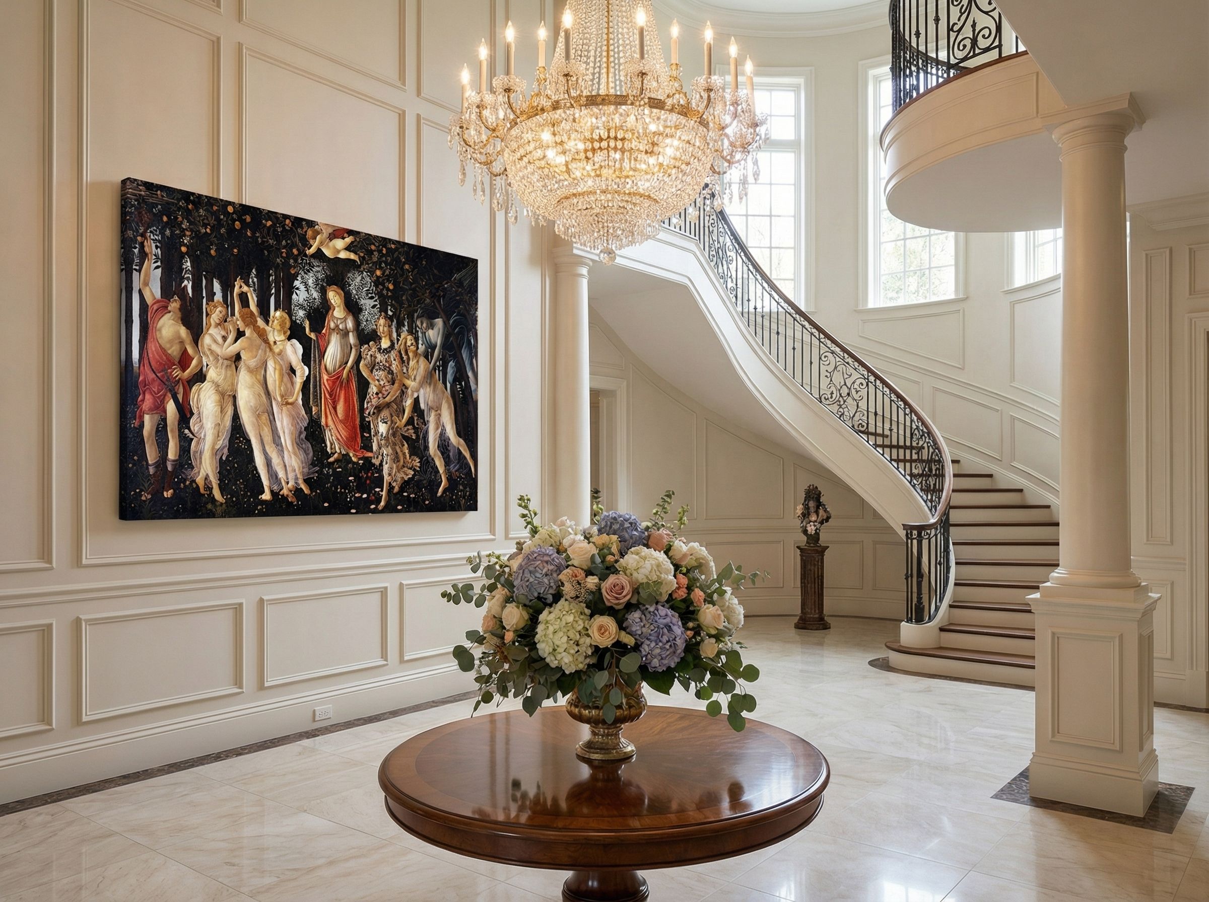 İlkbahar (Primavera), Rönesans sanatının en şiirsel ve en çok tanınan eserlerinden biridir. Doğa, aşk, bereket ve yenilenme temalarını mitolojik figürlerle bir araya getiren bu başyapıt; zarif hareketler, ritmik kompozisyon ve sembollerle dolu zengin bir anlatı sunar. Bu kanvas tablo, mekâna hem estetik bir zarafet hem de kültürel bir derinlik kazandırır.