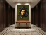 Yatay kompozisyon, dramatik aksiyonu geniş bir yüzeye yayarak salon, ofis ve galeri duvarlarında güçlü ve çarpıcı bir odak noktası oluşturur.