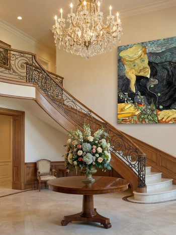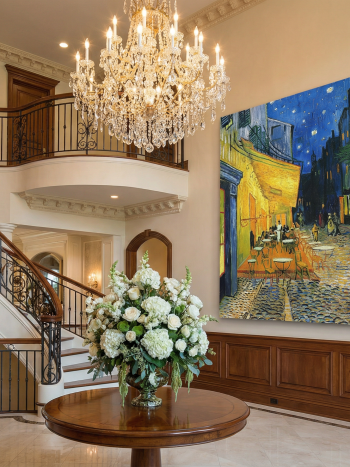 Pamuklu kanvas kumaş üzerine yapılan baskı, masif ahşap şase ile desteklenerek uzun ömürlü ve dayanıklı bir yapı sunar. Çerçevesiz modern formu sayesinde duvara asmaya hazır şekilde gönderilir ve bulunduğu ortama sofistike bir atmosfer kazandırır.