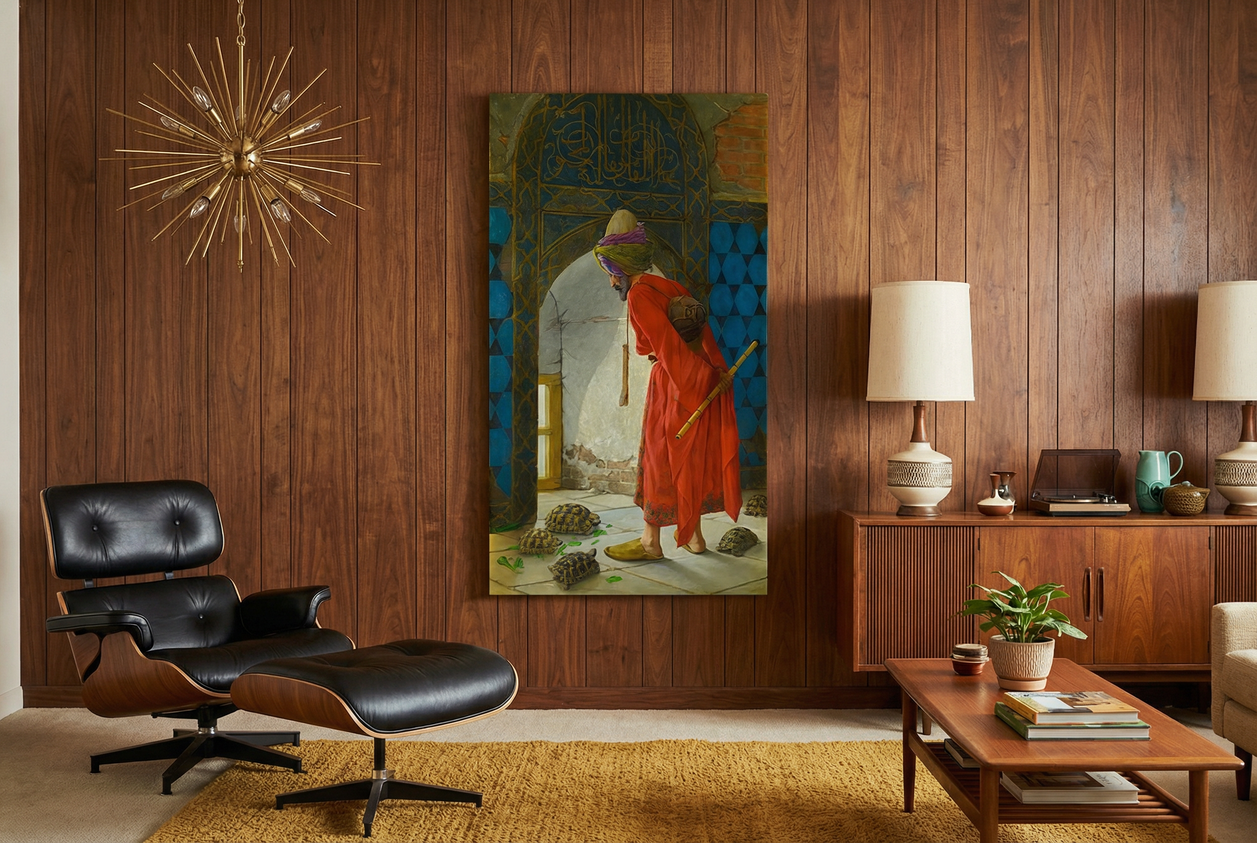 Kaplumbağalar Terbiyecisi Kanvas Tablo, klasik Osmanlı sanatının zamansız estetiğini modern mekânlarla buluşturan prestijli bir duvar dekorudur.