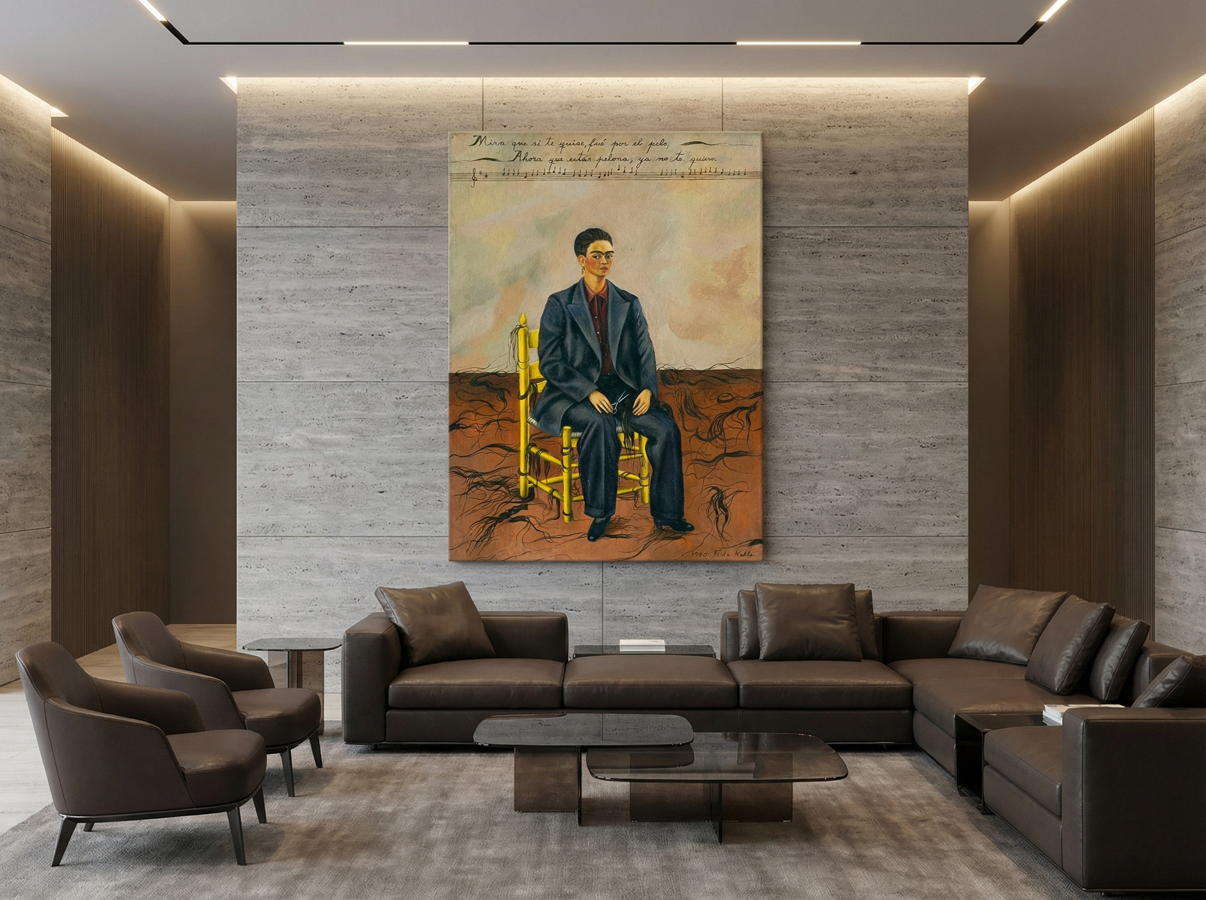 Dikey formda hazırlanan kanvas tablo, figürün duruşunu ve mesajını daha güçlü vurgulayarak modern ve karakterli mekânlarda çarpıcı bir odak noktası oluşturur.