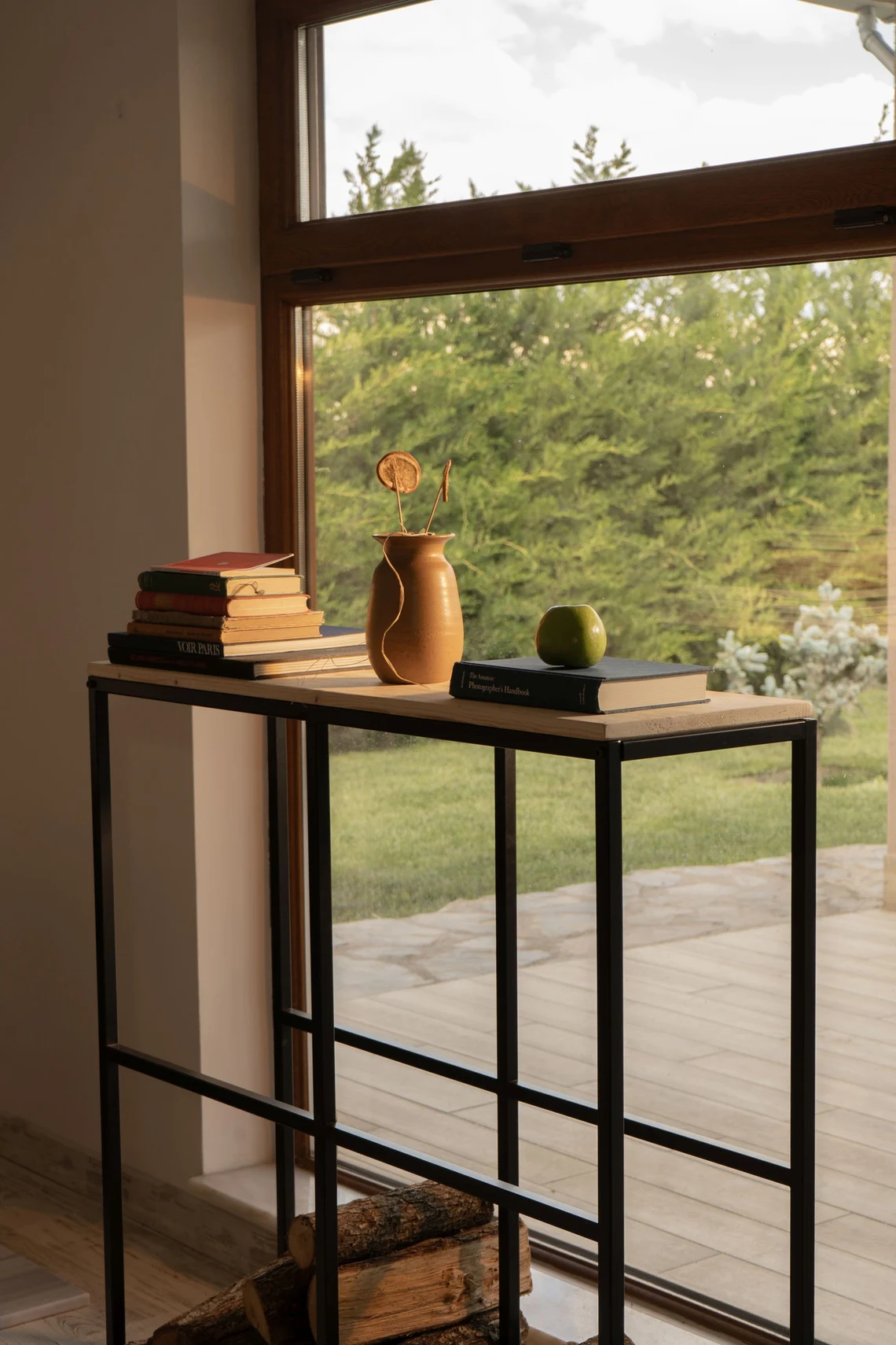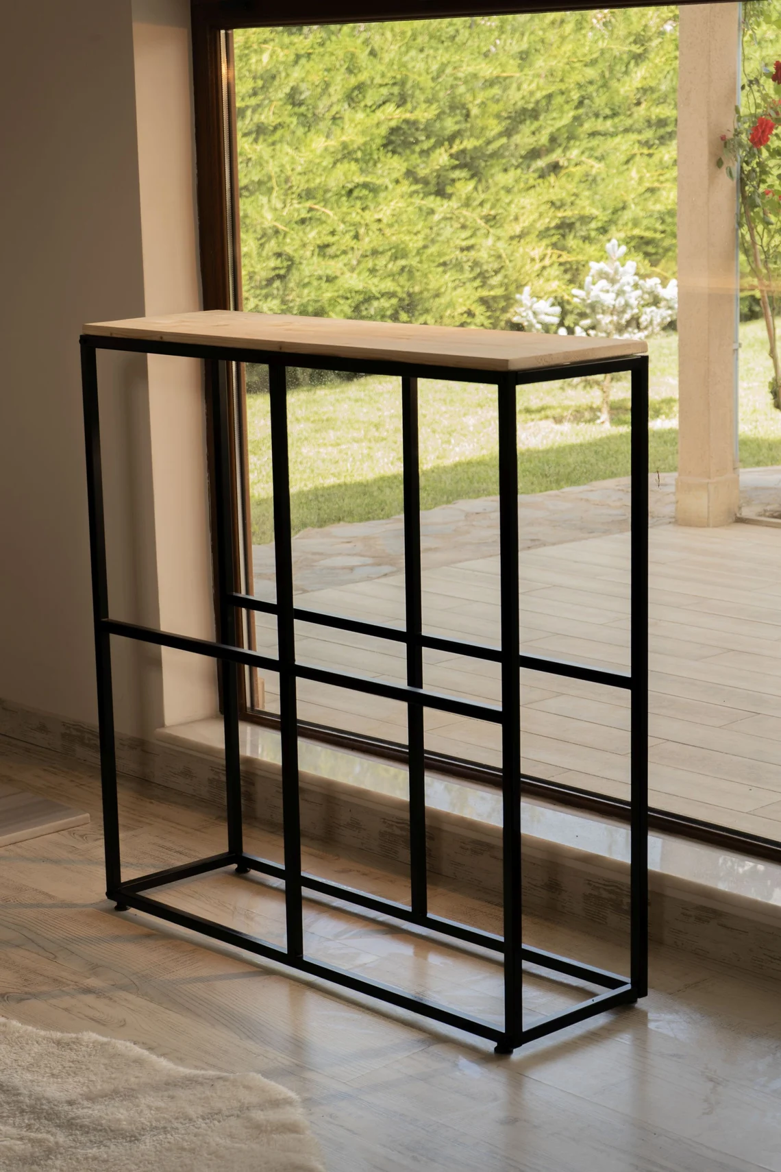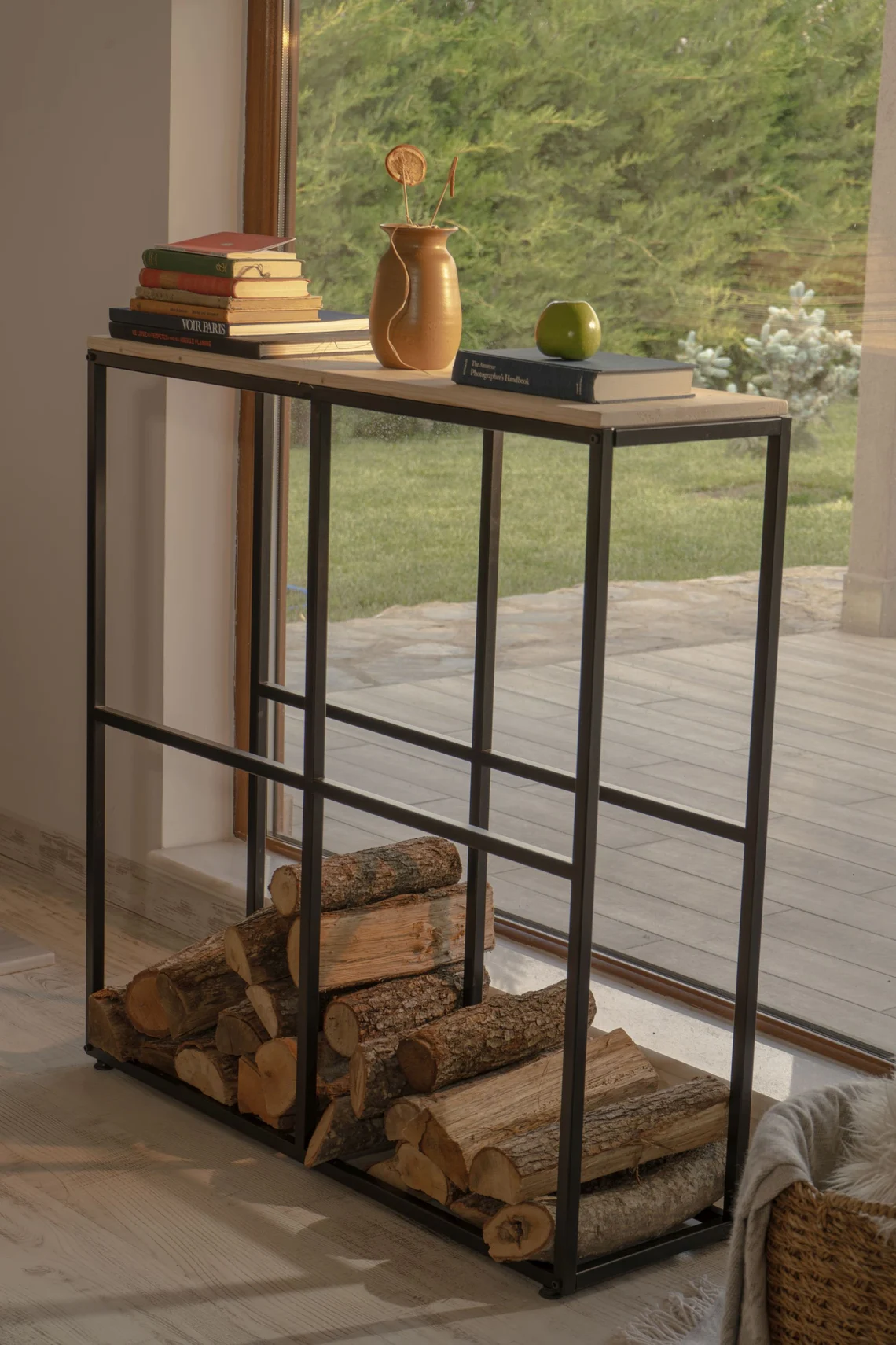 Konsol stilinde tasarlanan bu metal odunluk, şömine alanınıza hem düzen hem de şık bir görünüm kazandırır. Dar ve uzun formu sayesinde duvar boyunca konumlanarak fazla yer kaplamadan yüksek depolama alanı sunar. Oturma odası, şömine köşesi ya da geniş koridorlarda hem odun depolama ünitesi hem de dekoratif konsol olarak kullanılabilir.