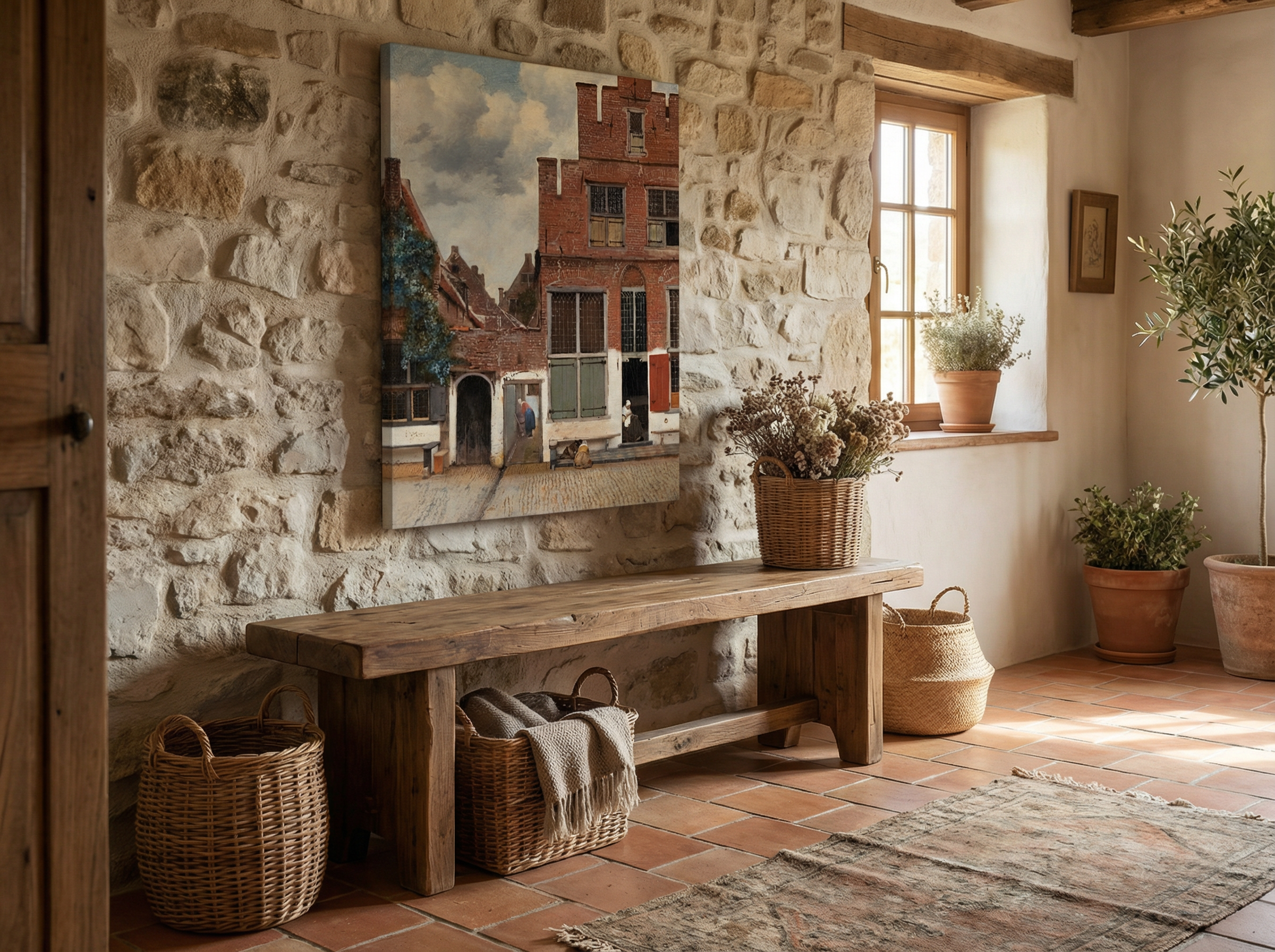 Johannes Vermeer’in nadir dış mekân sahnelerinden Küçük Sokak (The Little Street), gündelik hayatın sakinliğini ve nostaljik atmosferini tek karede hissettiren ikonik bir eserdir. Tuğla dokular, ışığın yumuşak geçişleri ve sokaktaki dingin akış; bu tabloyu hem klasik sanat severler hem de modern dekorasyon tercih edenler için güçlü bir duvar odağına dönüştürür.