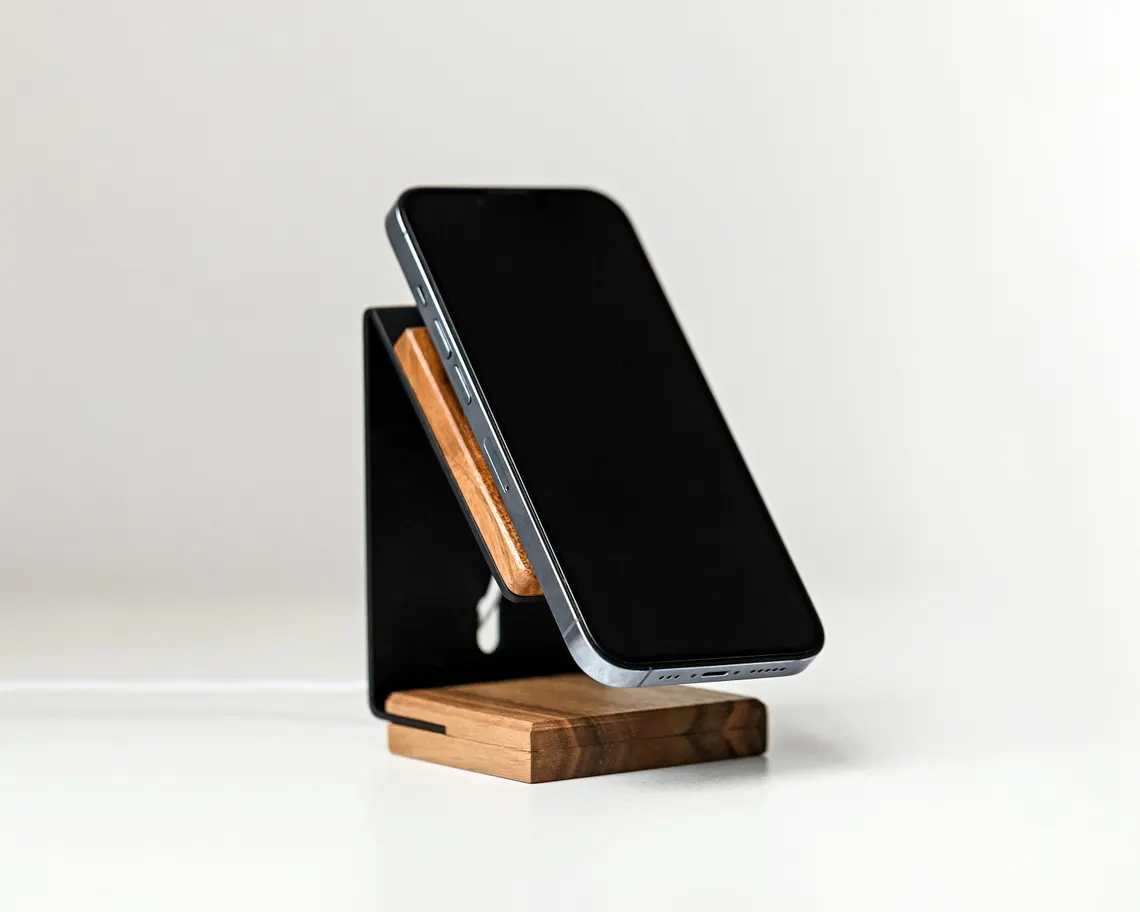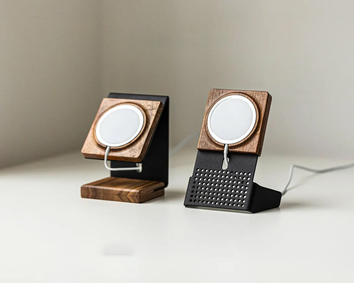 - MagSafe uyumlu ahşap kablosuz şarj istasyonu
