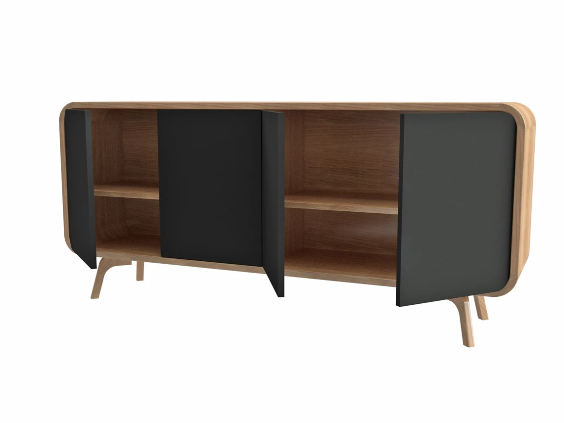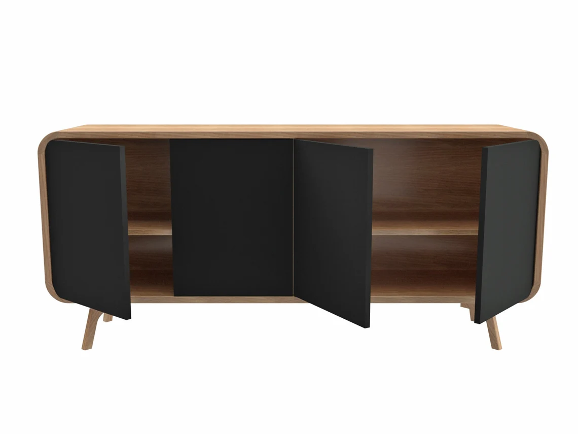Ön yüzde yer alan 4 kapak, “push to open” (bastır-aç) sistemi ile kolay ve sessiz açılır; böylece kulpsuz, sade bir görünüm elde edilir. İç bölümdeki iki farklı hazne ve ayarlanabilir raflar sayesinde medya oynatıcılar, oyun konsolları, kablolar ve günlük eşyalarınızı düzenli bir şekilde saklayabilirsiniz. Bu ahşap tv ünitesi, modern, eklektik ve klasik tarzlarla rahatlıkla kombinlenebilen zamansız bir tasarıma sahiptir.