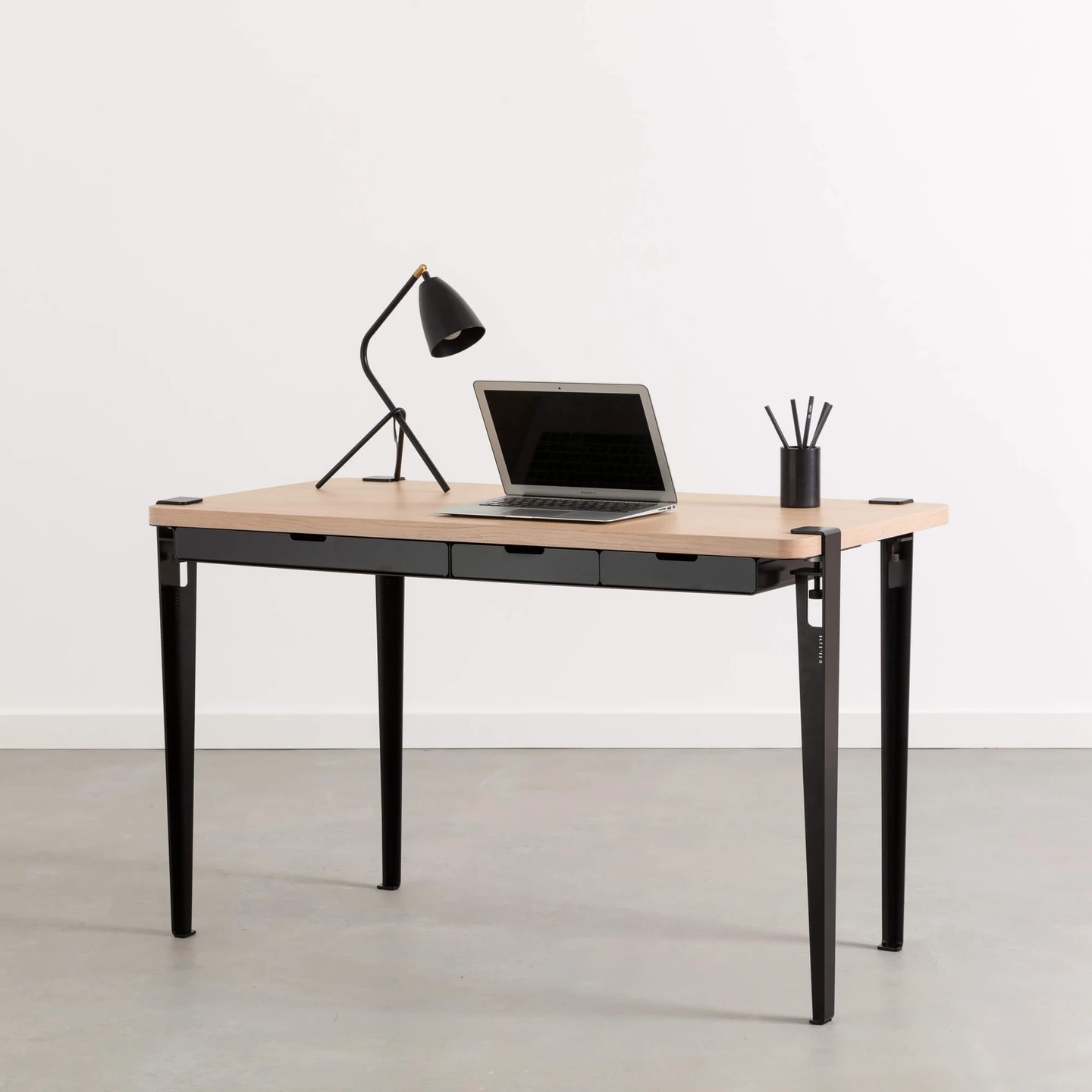 İsteğe bağlı olarak sunulan üç adet metal çekmece (120 x 25 x 5,5 cm), kalem, defter ve ofis malzemeleri için pratik bir depolama alanı oluşturur. Çekmeceler, masa tablasının altına ya da üstüne konumlandırılarak çalışma alışkanlıklarınıza göre esnek bir kullanım sağlar.