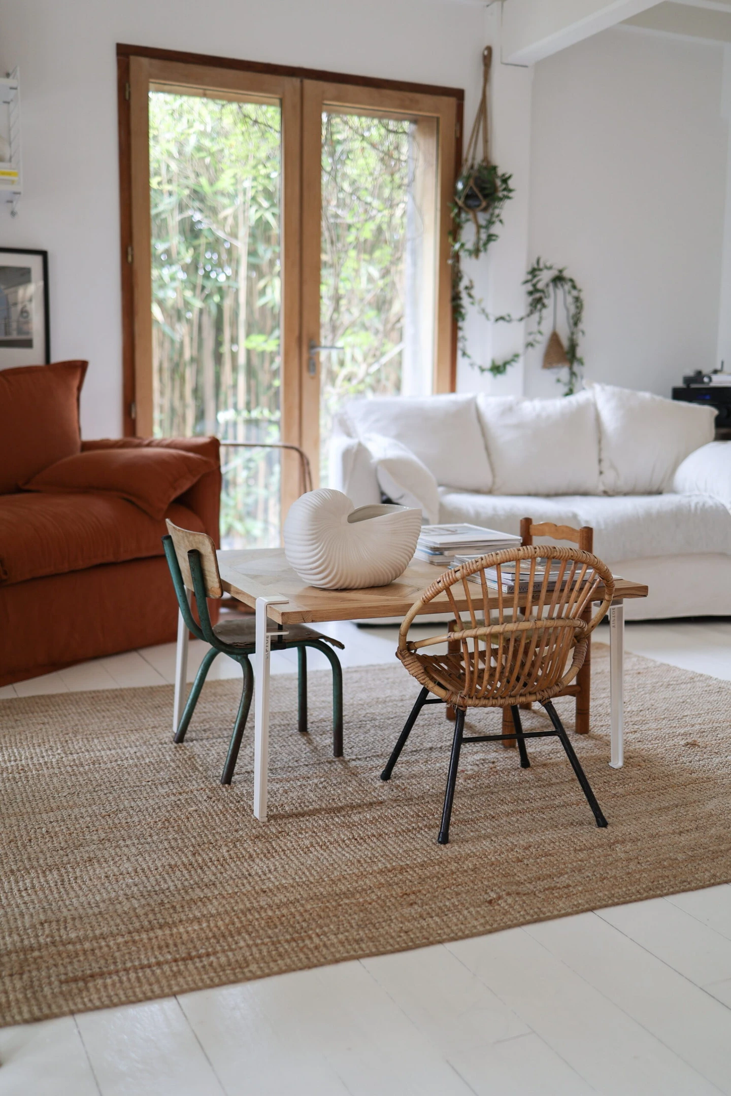 Özenle bir araya getirilen ahşap parçalarından oluşan tabla, el işçiliğiyle işlenir ve dayanıklılığı artırmak amacıyla verniklenir. Bu işlem, yüzeyi günlük kullanıma karşı daha dirençli hâle getirirken ahşabın doğal desenlerini ön plana çıkarır. Her bir ürün, ahşabın kendine özgü yapısı sayesinde farklı ton ve dokulara sahiptir; bu da sehpaya karakter kazandırır.