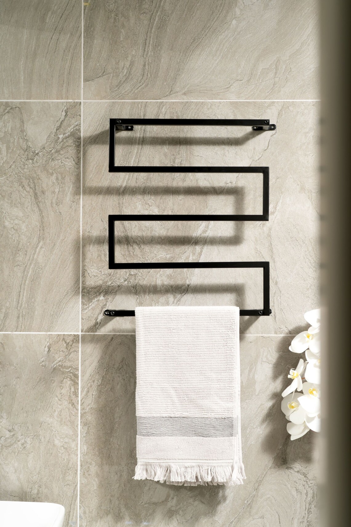 Minimalist çizgilere sahip metal raf tasarımıyla banyonuzda hem düzen hem de modern bir görünüm elde etmek ister misiniz? Ergonomik yapıya sahip bu duvara monte metal raf, birden fazla askı ve depolama alanı sunarak havlularınızı, bakım ürünlerinizi ve küçük aksesuarlarınızı her zaman elinizin altında tutar. İnce ama güçlü geometrik S formu, banyonuzu sade ve şık bir spa atmosferine dönüştürür.