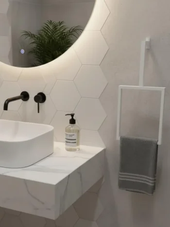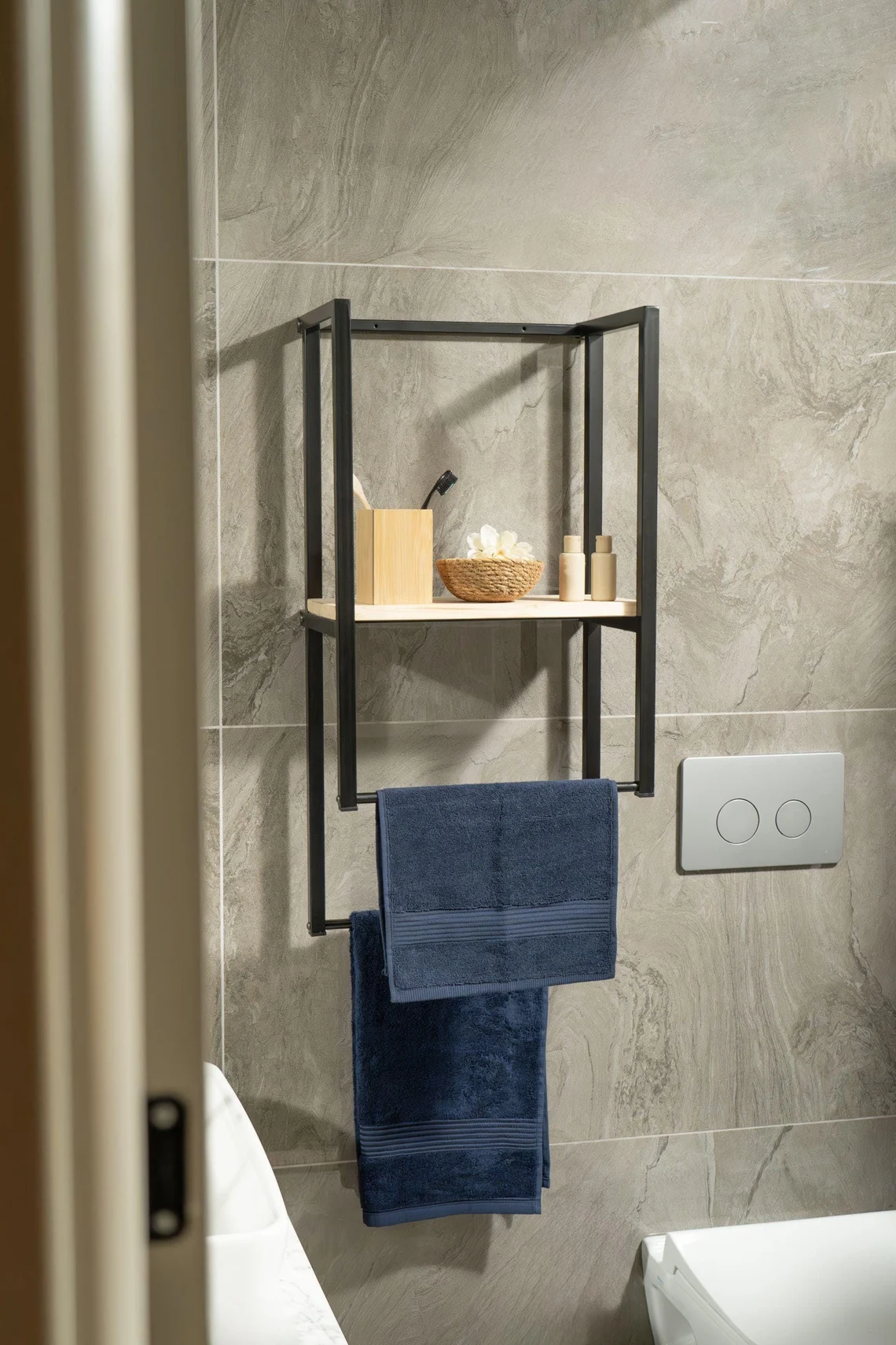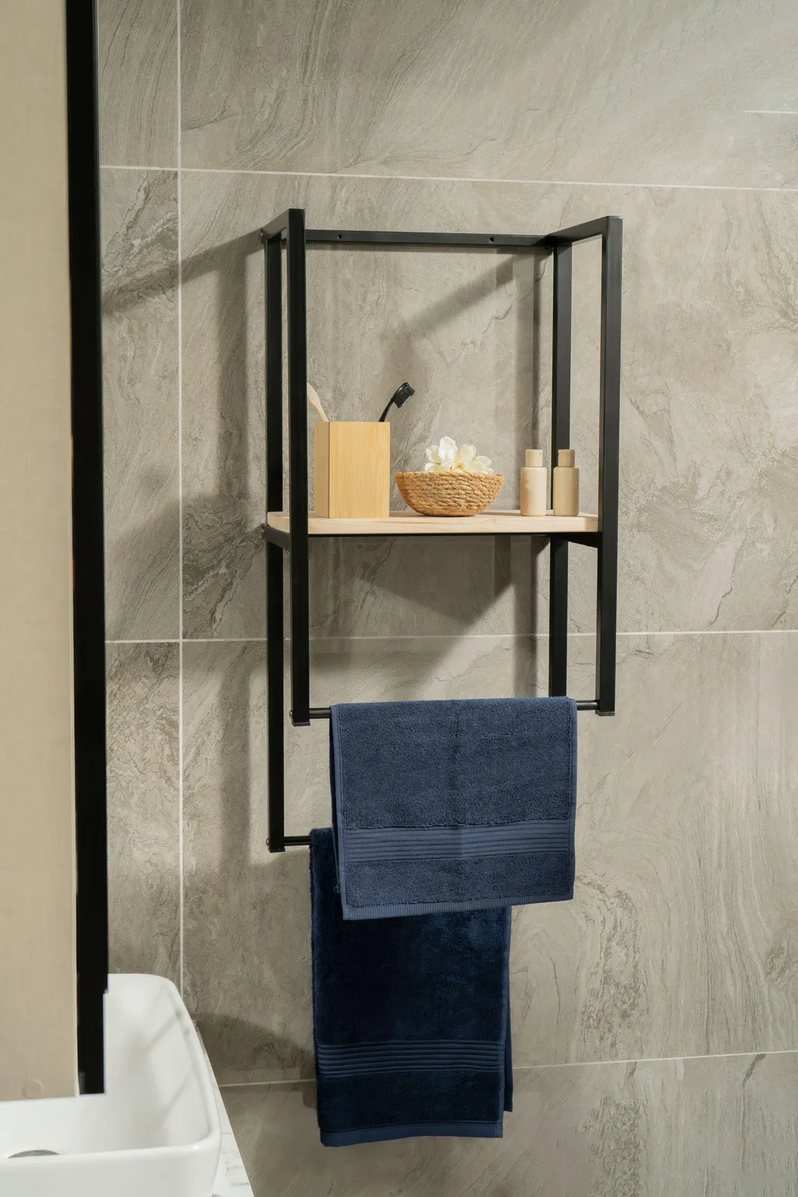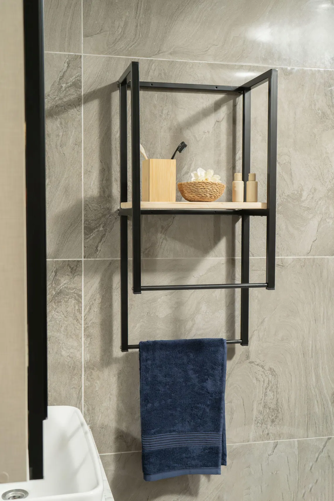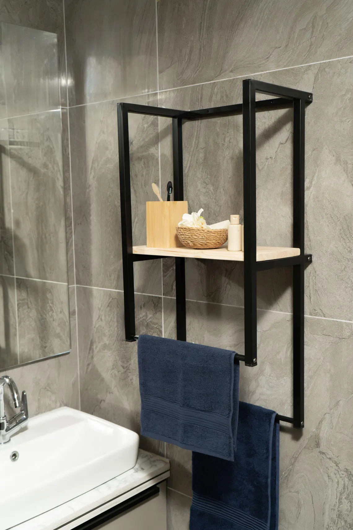 Metal gövde ve doğal ahşap raf tablasını bir araya getiren ahşap banyo rafı, duvarlarınızı işlevsel bir depolama alanına dönüştürür. Çift askılı yapısı havlu ve aksesuarlar için pratik kullanım sunarken, geniş ahşap raf yüzeyi banyo veya mutfakta günlük eşyalarınızı düzenlemenizi sağlar. Şık tasarımı ve dayanıklı yapısıyla hem dekoratif hem uzun ömürlü bir çözümdür.