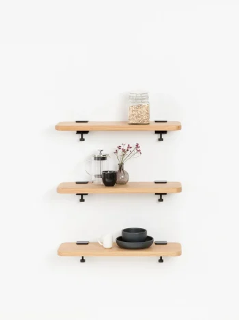 Tasarım: Çift askılı, duvara asılan, geniş ahşap raf yüzeyi