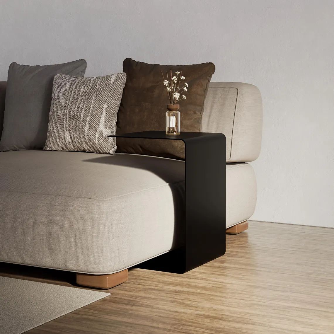 Minimal C form metal sehpa, koltuk ve berjer altına kolayca giren ergonomik yapısıyla dar alanlarda pratik kullanım sunar. Elektrostatik toz boyalı siyah metal gövdesi dayanıklı ve şıktır. Üç farklı yükseklik seçeneğiyle salon, okuma köşesi ve yatak yanı için ideal, kurulumsuz ve kullanıma hazır bir yardımcı sehpadır.