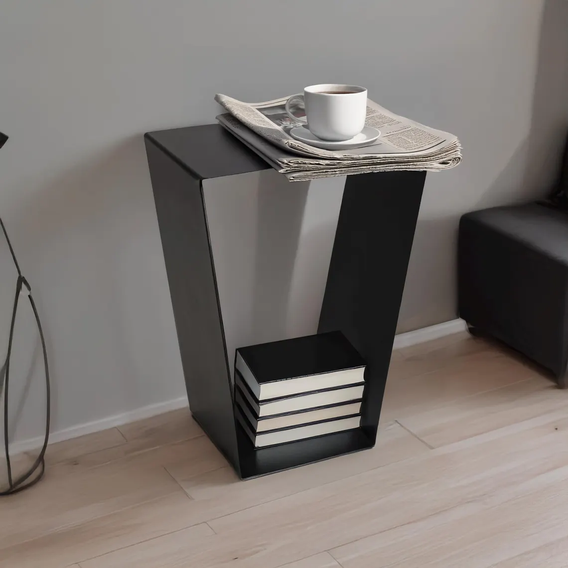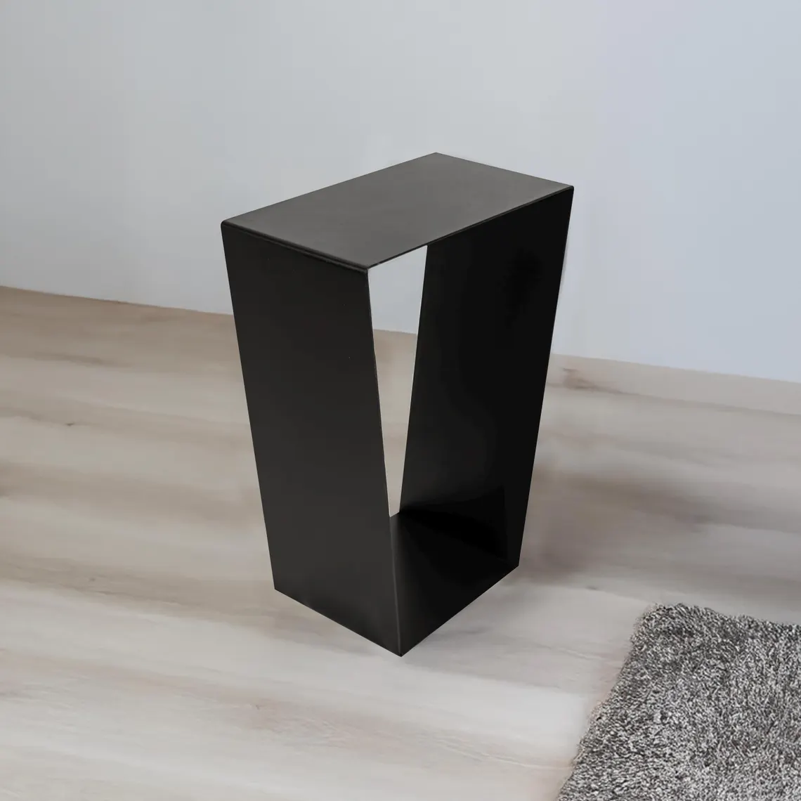 Modern çizgilere sahip bu şık metal sehpa, hem fonksiyonel hem de dekoratif bir yan sehpa arayanlar için tasarlandı. İnce silueti ve mat siyah yüzeyiyle salon, oturma odası veya yatak odasında rahatlıkla kullanabileceğiniz minimal bir tamamlayıcı mobilya sunar. Kanepe yanında kahve sehpası, koltuk yanı yan sehpa veya bitkilerinizi konumlandırabileceğiniz zarif bir stand olarak değerlendirebilirsiniz.