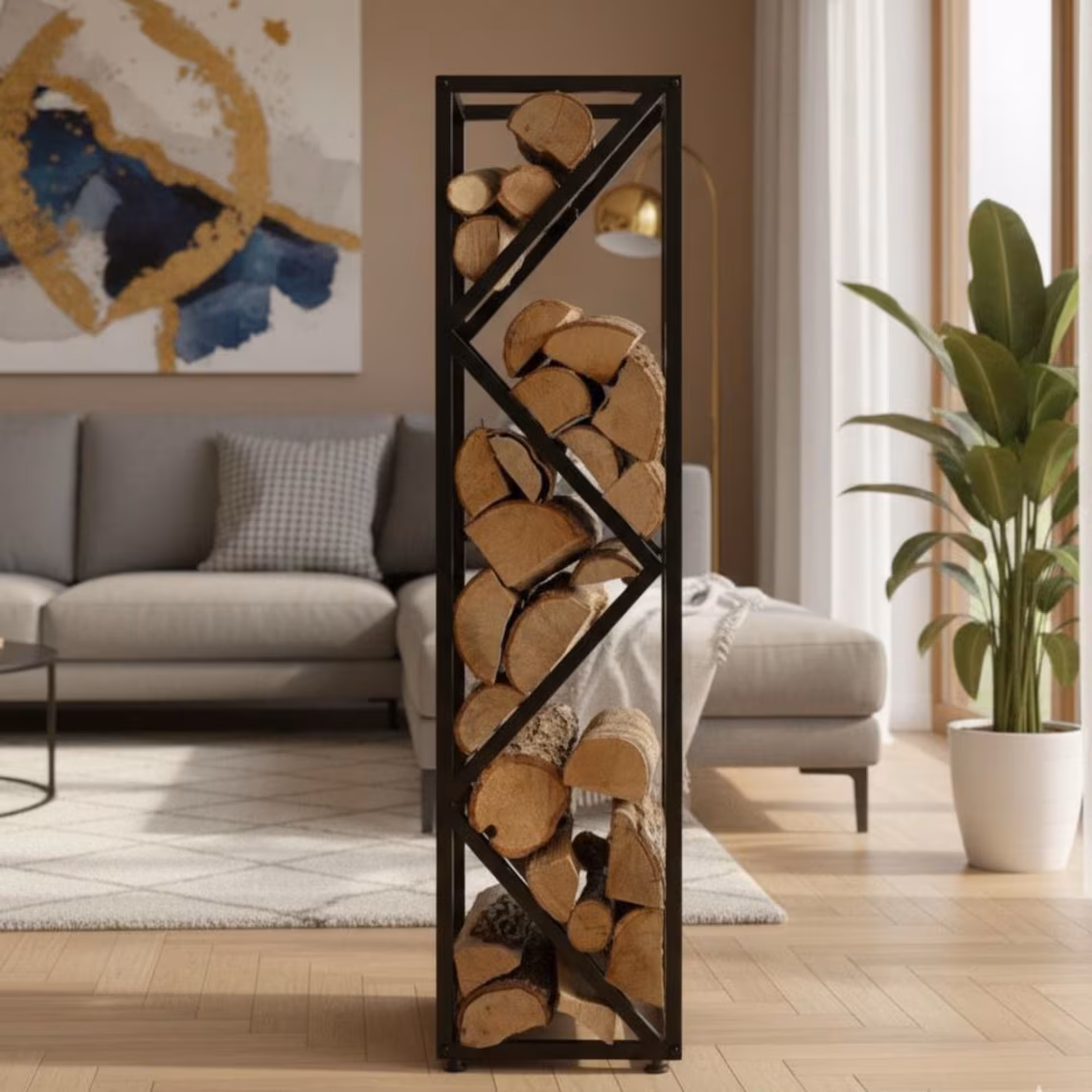 Slim ve dikey tasarımıyla öne çıkan bu metal odunluk, şömine ve soba yanında minimum yer kaplayarak maksimum düzen sağlar. Dayanıklı çelik gövdesi, mat siyah kaplaması ve montaj gerektirmeyen yapısıyla modern yaşam alanları için şık, pratik ve uzun ömürlü bir odun depolama çözümüdür.