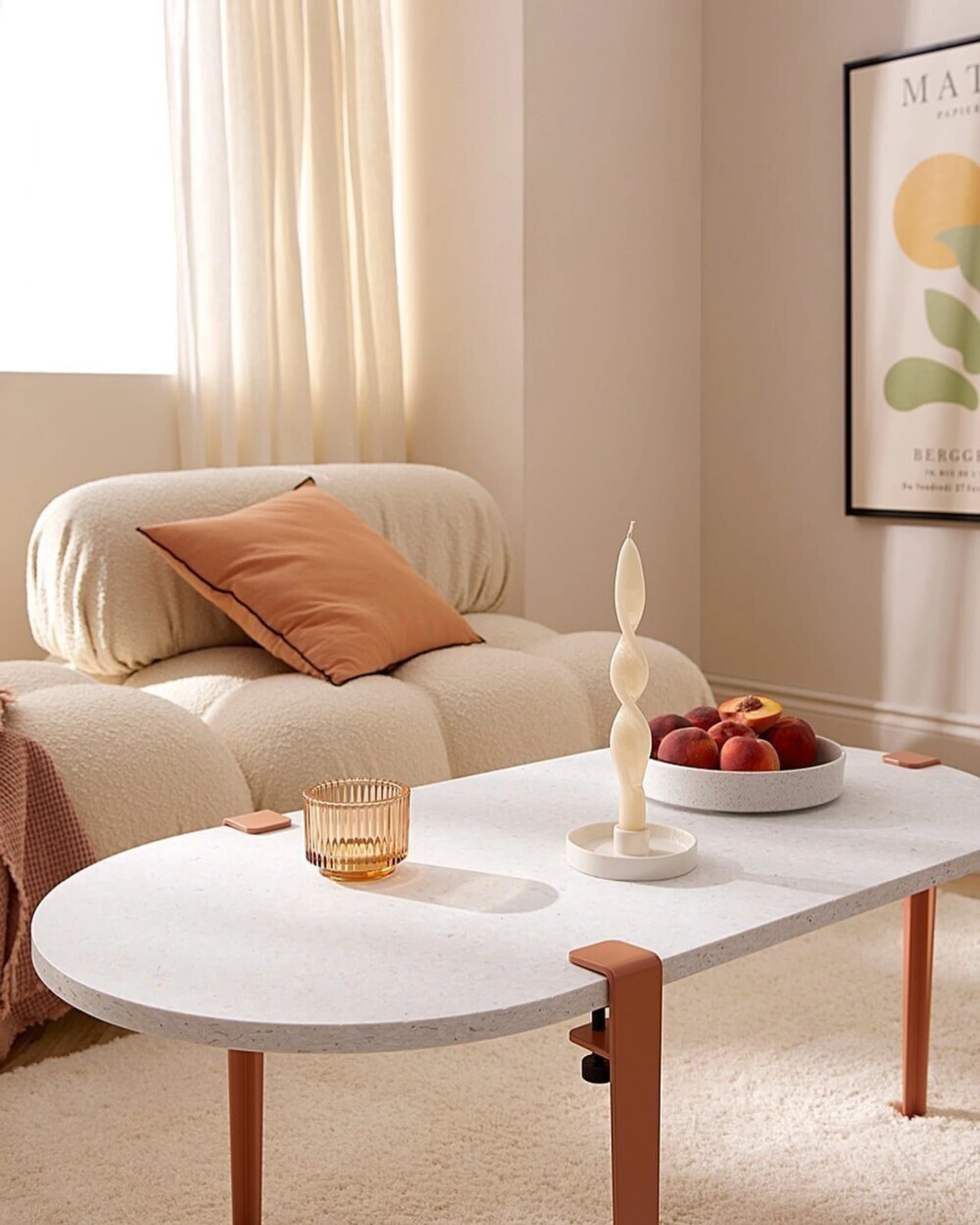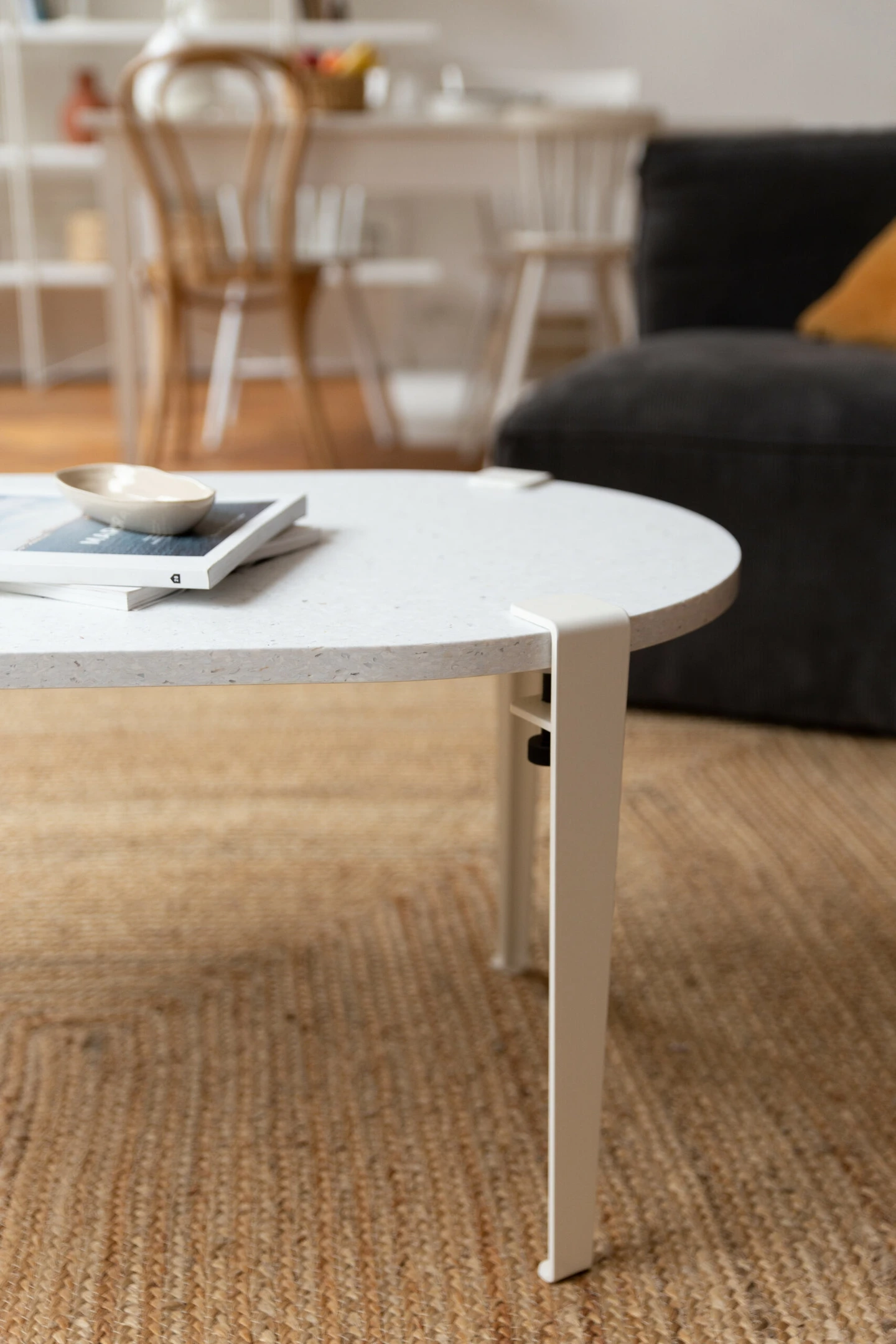 Dört adet sağlam metal ayak, yuvarlak tablayı dengeli bir şekilde taşır ve sehpaya güçlü bir duruş kazandırır. Metal ayakların sade çizgileri, ahşabın doğal dokusuyla birleşerek modern, endüstriyel ve zamansız dekorasyon stilleriyle kolayca uyum sağlar. Demonte yapısı sayesinde ürün dar alanlardan rahatlıkla taşınabilir ve kısa sürede kurulabilir.